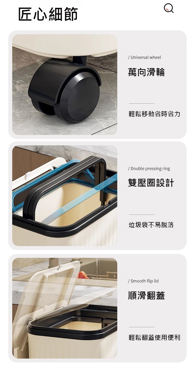 12分鐘前【不彎腰】家用可移動多功能置物垃圾桶 - 【超殺*贈20垃圾袋】1入組$279