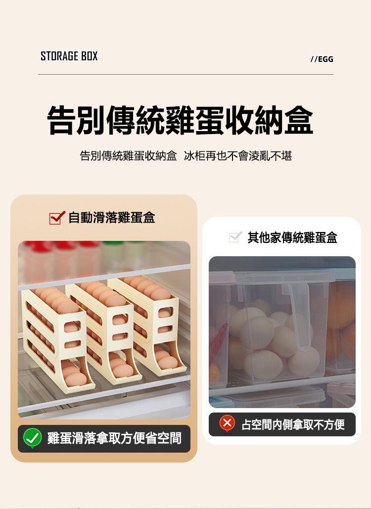 7分鐘前自動滾蛋式雞蛋收納盒 - 3入组(可放90個雞蛋)NT$1098