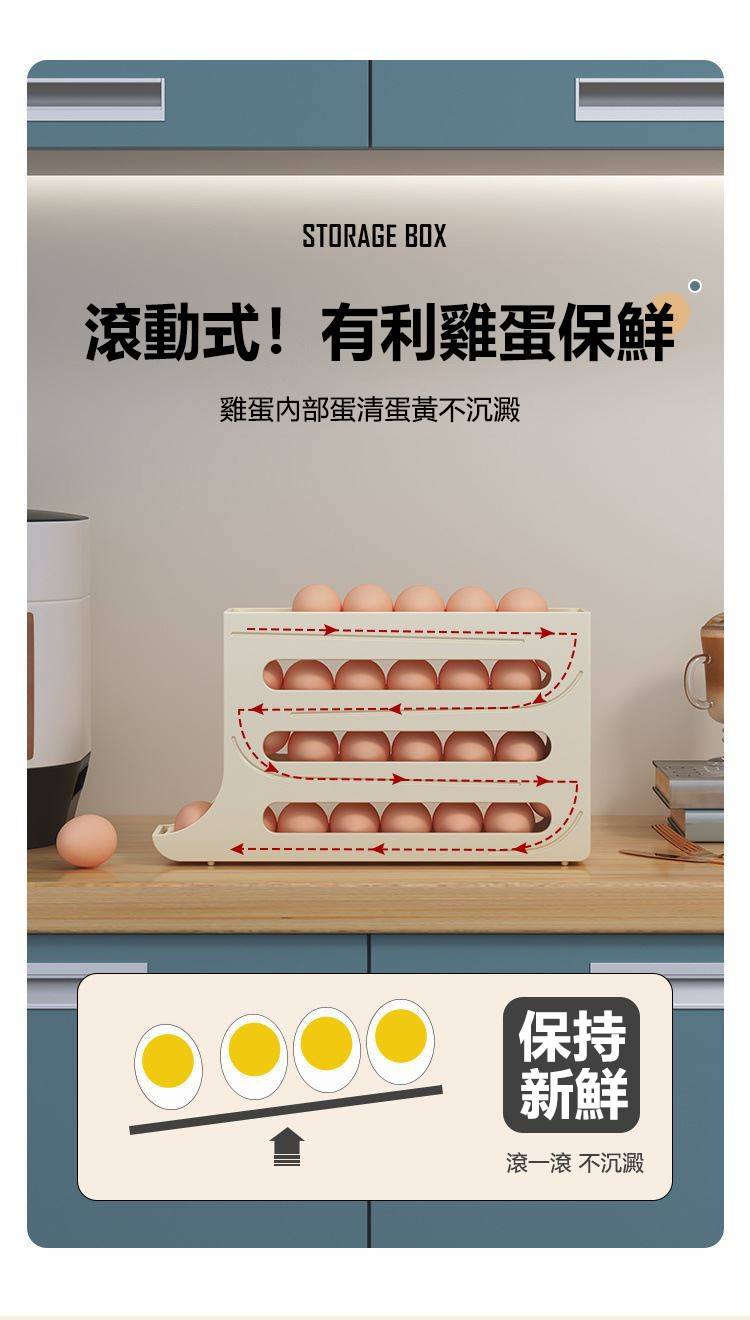 25分鐘前自動滾蛋式雞蛋收納盒 - 3入组(可放90個雞蛋)NT$1098